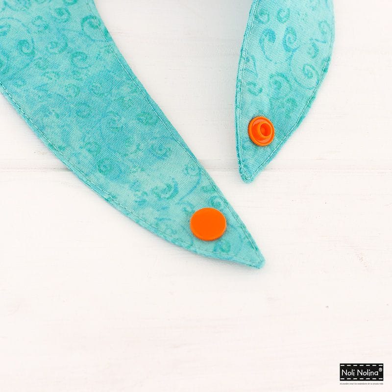 El material empleado para el babero es tela de alta calidad 100% algodón, y el nombre está bordado a mano.