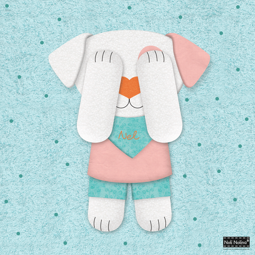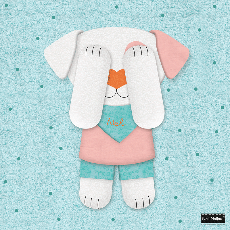 Nel todavía no había nacido cuando me hice cargo de diseñar y confeccionar para él este conjunto compuesto por una capa de baño, manopla y babero personalizado.