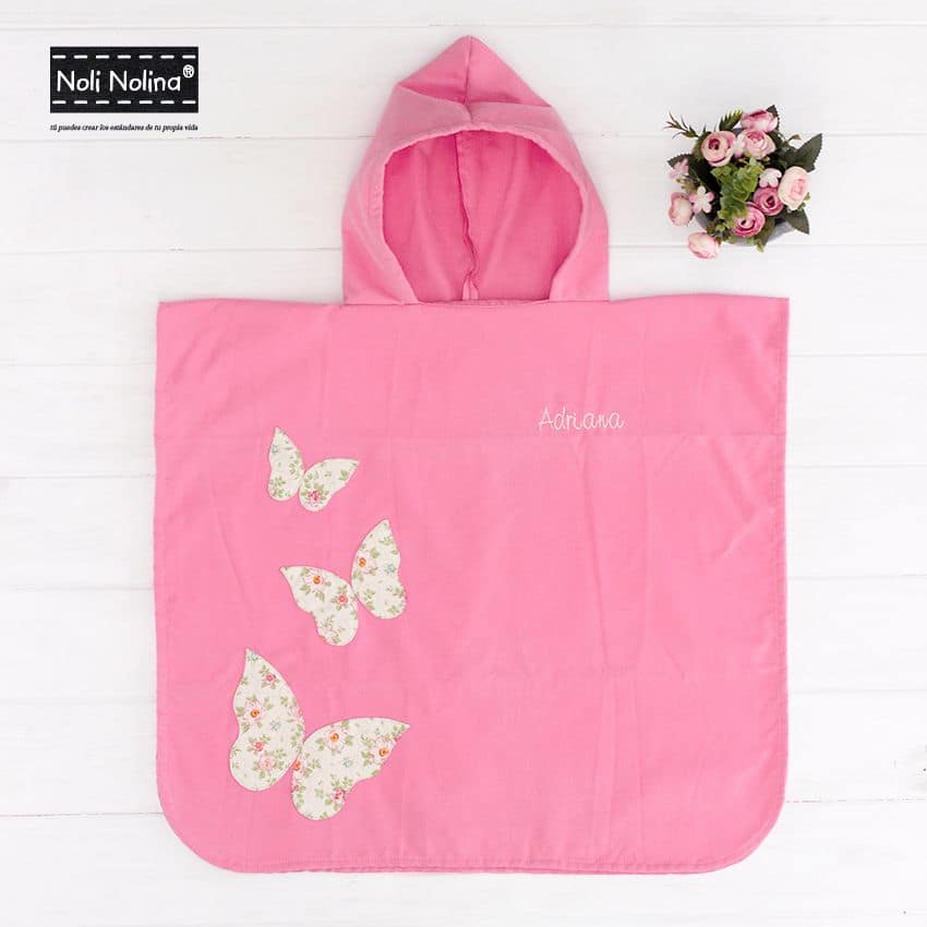 La toalla está hecha con microfibra para que sea extremadamente absorvente, ligera y rápida de secar. Las mariposas son de tela de algodón 100% y están cosidas.