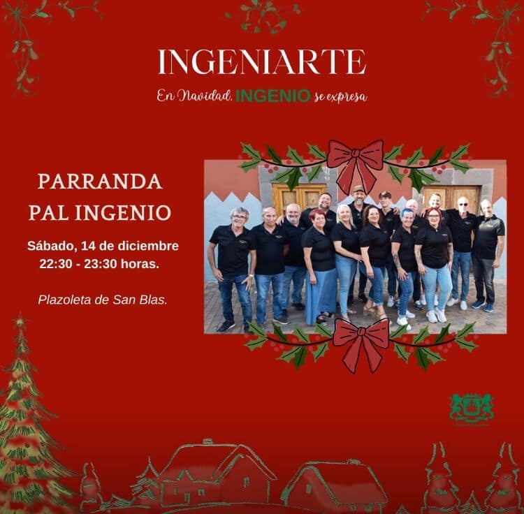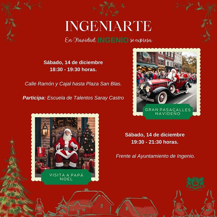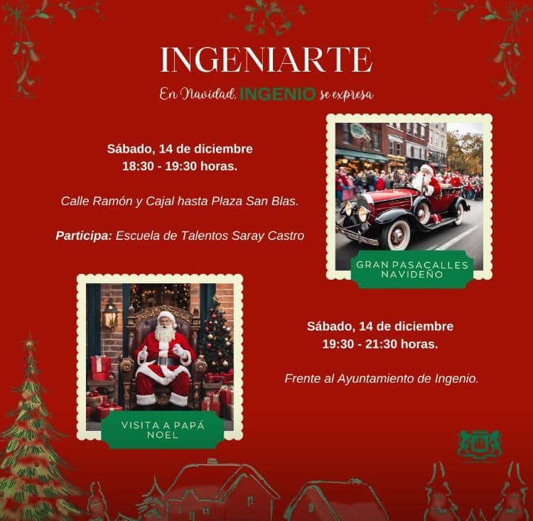 Ingeniarte vuelve en Navidades para resaltar la riqueza cultural de la Villa de Ingenio a la vez que invita a vecinas, vecinos y visitantes a disfrutar de estas entrañables fiestas con arte y en familia.