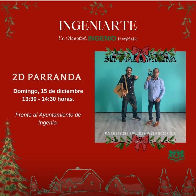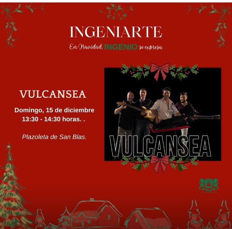 El domingo 15 de diciembre las actividades se desarrollarán en horario de mañana, con los puestos de artesanía abiertos de 10:00 a 15:00 horas y la música en directo como la gran protagonista de la jornada. Las actuaciones de Vulcansea y del grupo 2D Parranda a partir de las 13:30 horas cerrarán esta edición de Ingeniarte.