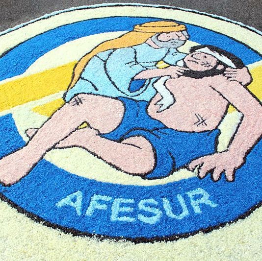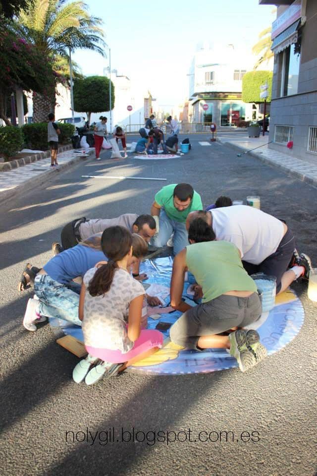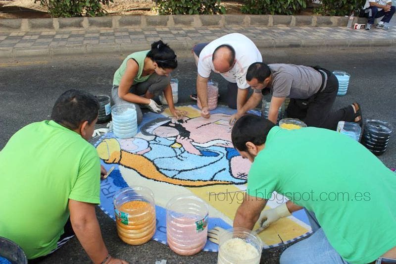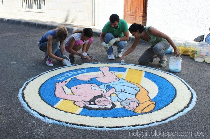 El año pasado el Párroco de Arinaga y Cruce de Arinaga, nos dió la oportunidad a los componentes de AFESur de realizar una de estas alfombras (conmigo al frente). Aunque el reto suponía un esfuerzo extra lo acepté por varios motivos:
