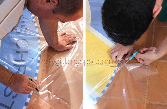Preparamos un plástico transparente (que es muy barato y lo consigues en cualquier ferretería) para proteger la plantilla de papel, ya que la humedad de la sal podría diluir la tinta de la impresora: