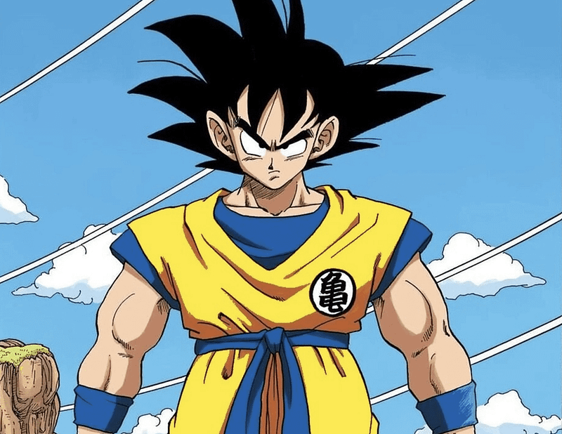 En la imagen, se muestra a Goku llevando el símbolo «KANJI KAME 亀», que significa «tortuga».